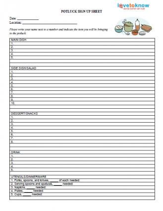 Show ImagePrintable Potluck Sign Up Sheets Lovetoknow Sign Up Sheets Potluck Online Sign Up Sheet