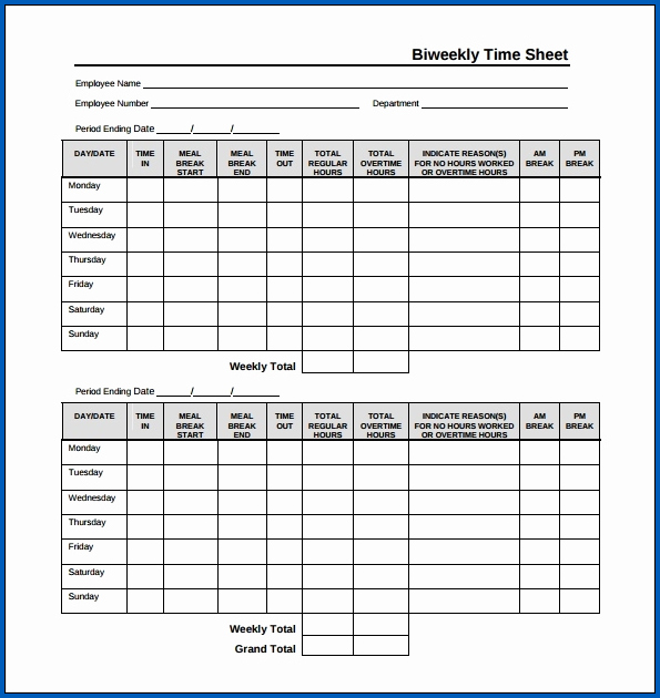 The vast world of the internet is the source of all things. Free Printable Biweekly Time Sheet Pdf. Pay begin date pay end date pay date day date time in lunch start lunch end time out sunday monday tuesday wednesday thursday friday saturday total regular hours worked.