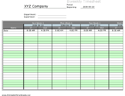 Free Printable Biweekly Timesheet