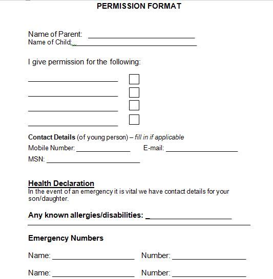 In most institutions it is a general rule that there should be duly signed permission slips before students can join activities. It has multiple uses and sometimes used as a legal document. Field Trip Permission Letter Format.