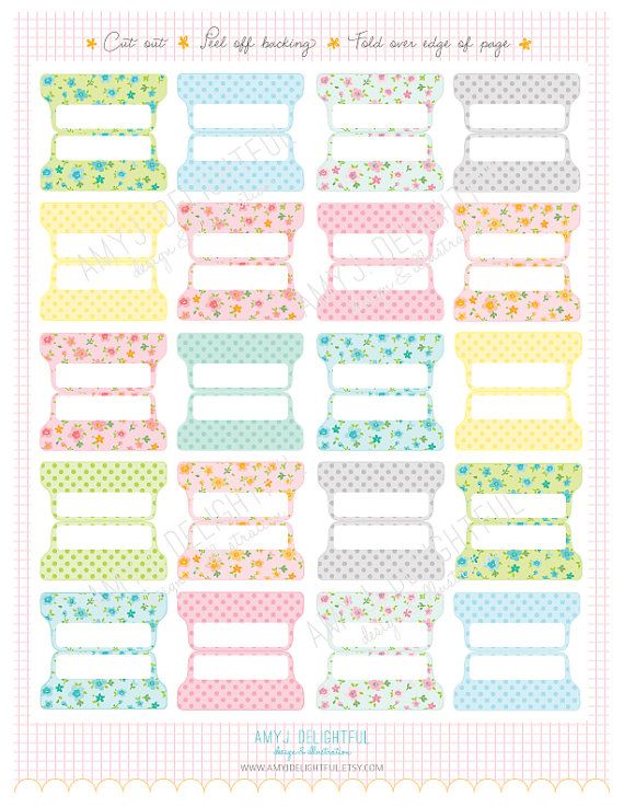 Show ImageSmall Size Printable Blank Planner File Tabs Digital File Instant Download Floral Polka Dots Pastels Home Management Planner Tabs Planner Planner Stickers